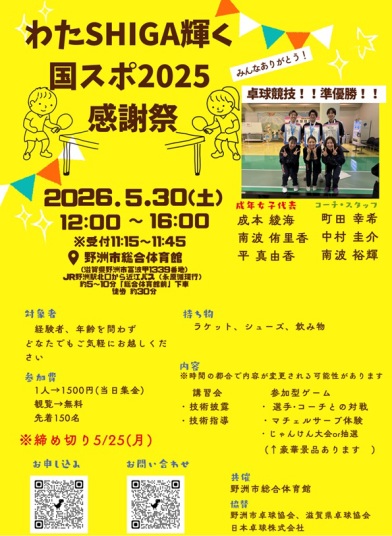 2026.1.3 2025年度の日本卓球協会及び滋賀県卓球協会への